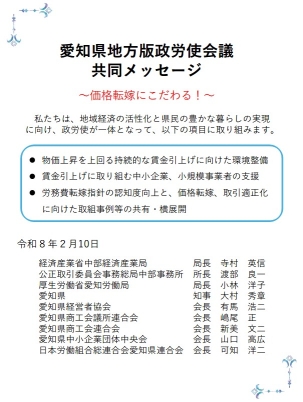 令和8年2月10日、愛知県地方版政労使会議を開催しました。