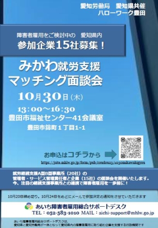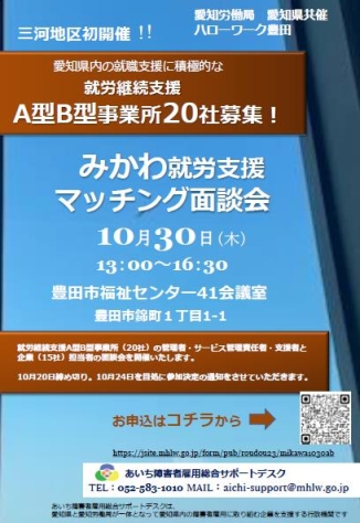 みかわ就労支援マッチング面談会の開催について(参加企業・就労継続支援A型・B型事業所の募集)