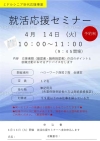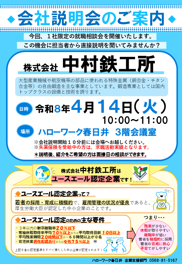 就職相談会![]() ・参加企業2社 ・要事前予約 ・オンライン(ZOOM)面談対応 |