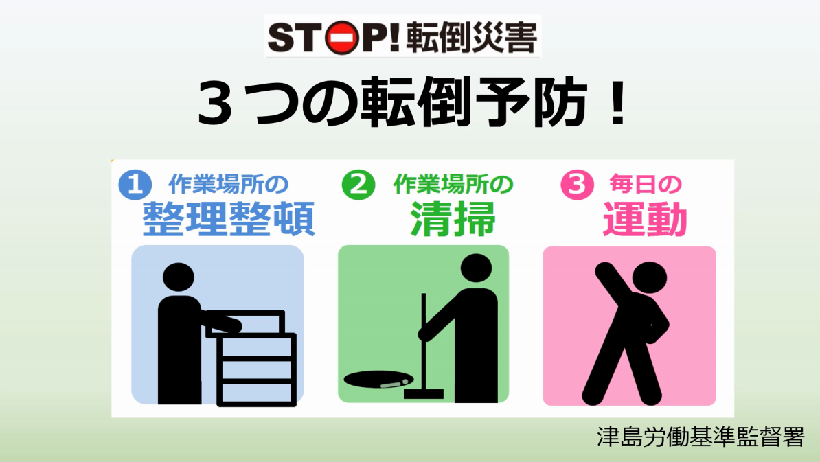 転倒災害の防止について,2S,危険個所の可視化など,できることから取り組みましょう。