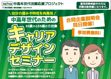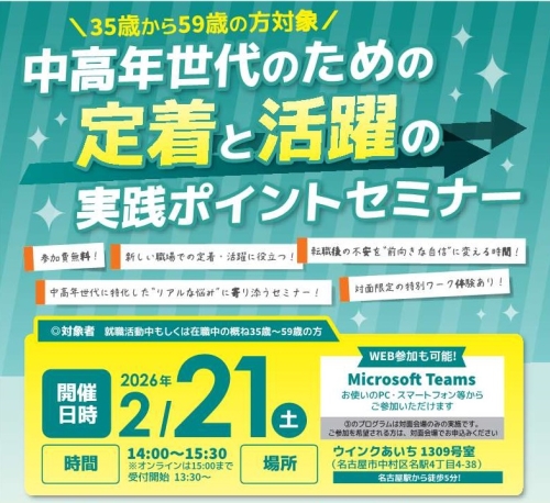 ◆『令和7年度中高年世代活躍応援プロジェクト』(愛知労働局委託事業)による求職者向けセミナーがウインクあいちで開催されます。NEW!