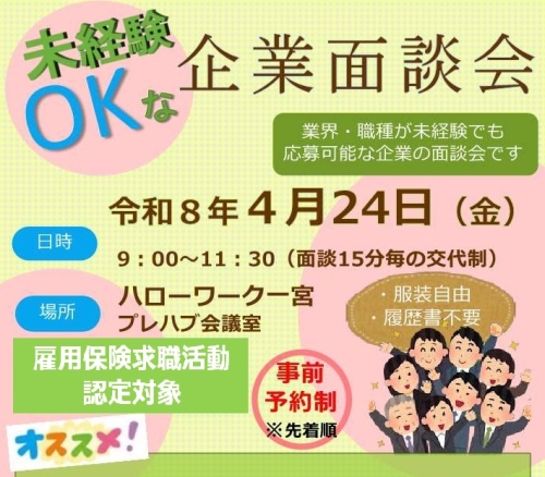 <求職者様向け> 定員に達したため募集締め切りになりました。