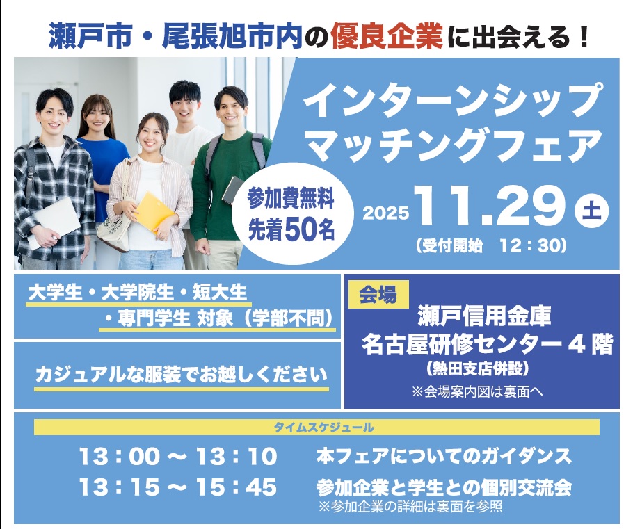 インターンシップ&オープンカンパニーを実施する瀬戸市内・尾張旭市内の企業14社が集結!