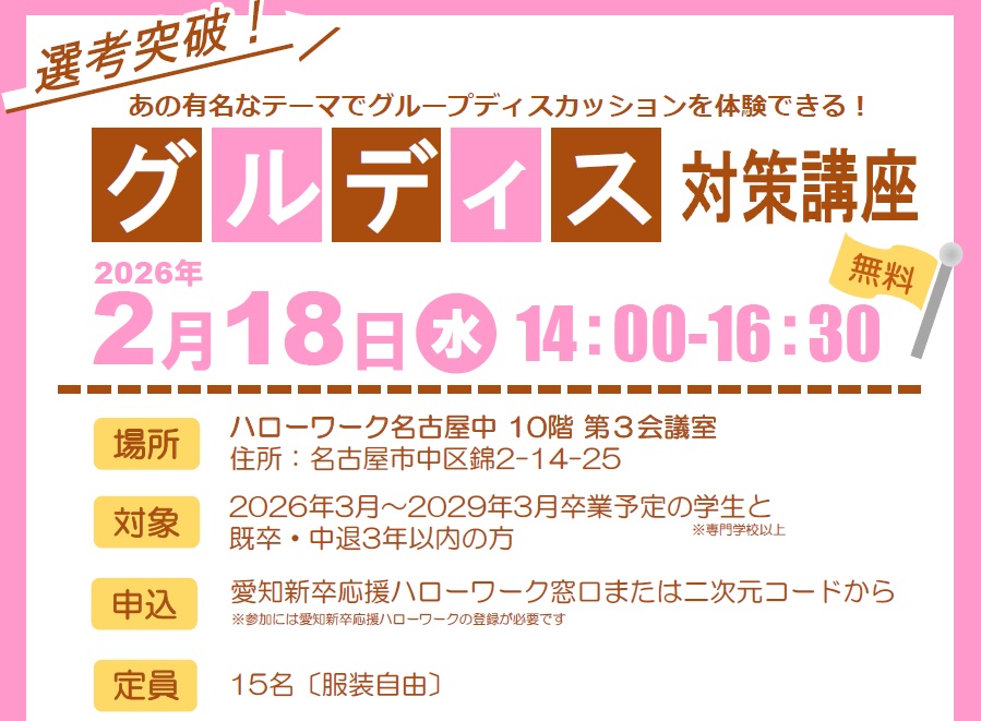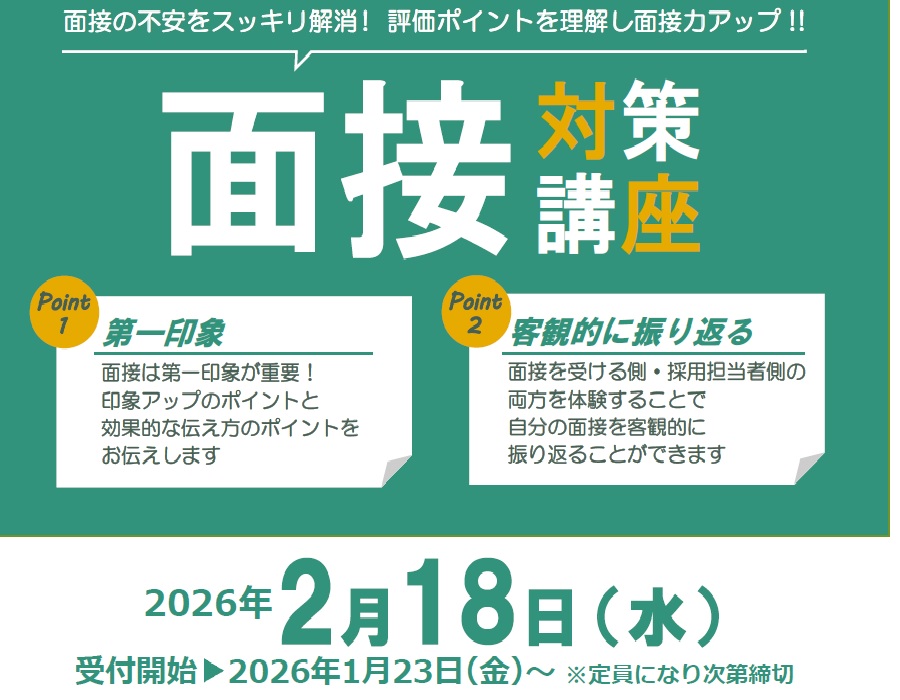 様々方と集団面接練習ができる機会ですので、是非、ご参加下さい。