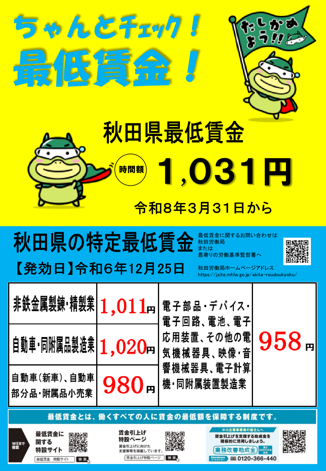賃上げ支援助成金パッケージ/秋田県の最低賃金について