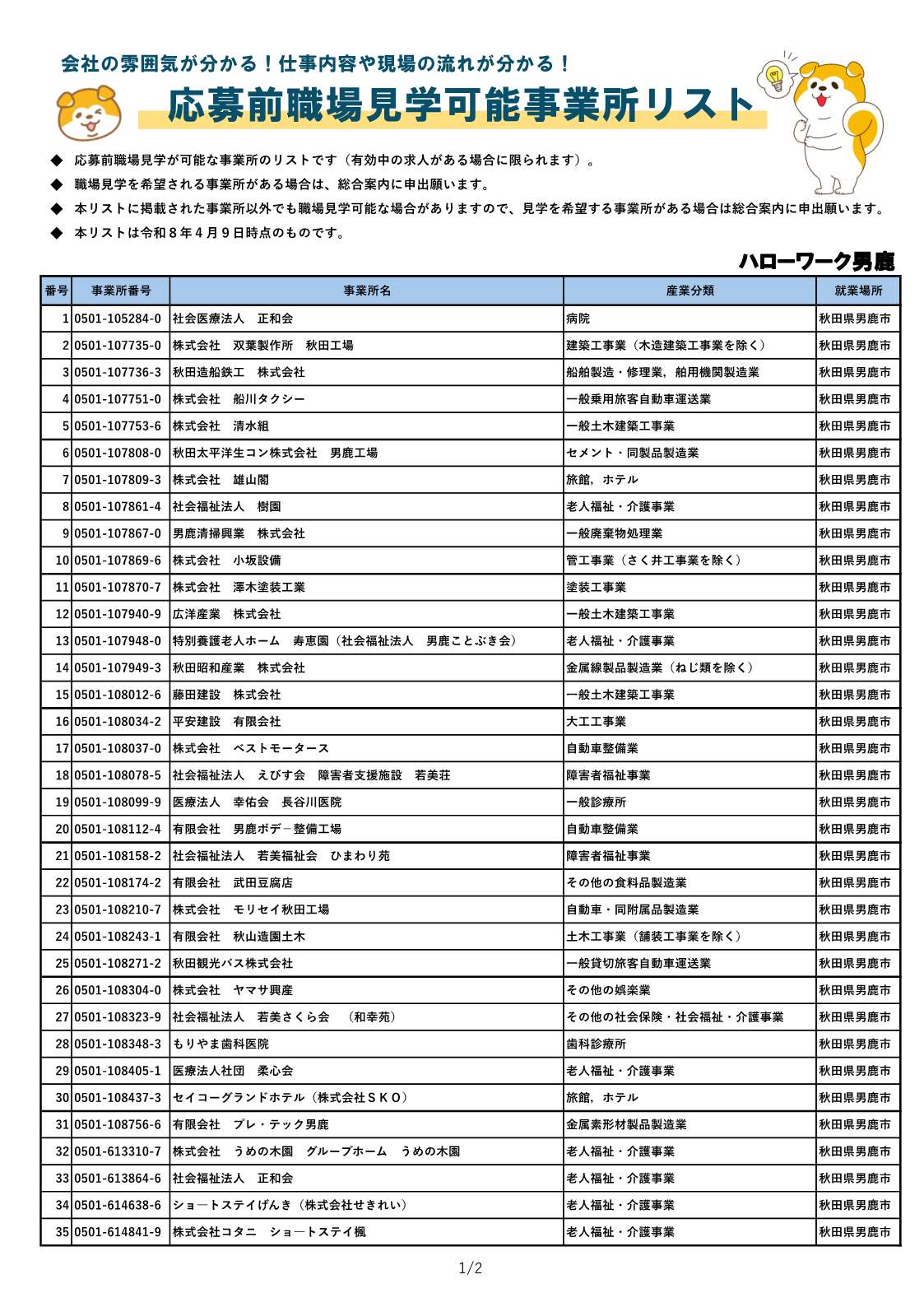 ハローワークでは応募前の職場見学をオススメしています。ぜひ受入れをご検討ください!