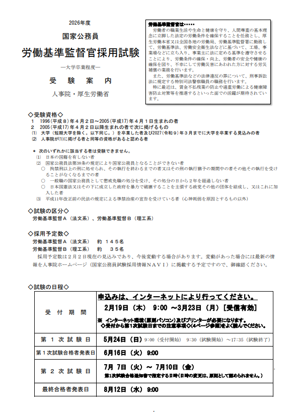 (2026年度労働基準監督官採用試験パンフレットP19をご覧ください。)
