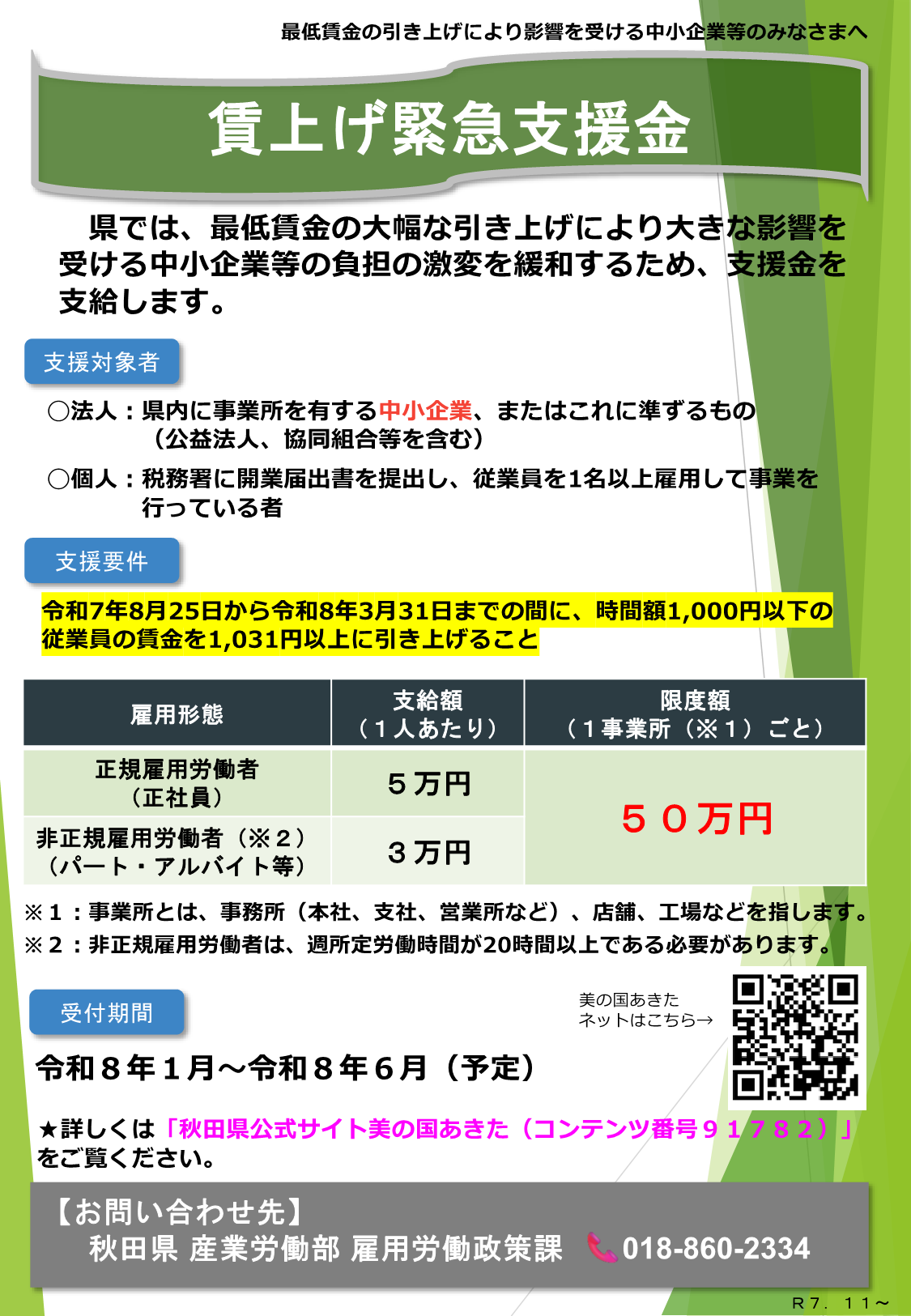 あきた賃上げ緊急支援金(秋田県)のお知らせ NEW!