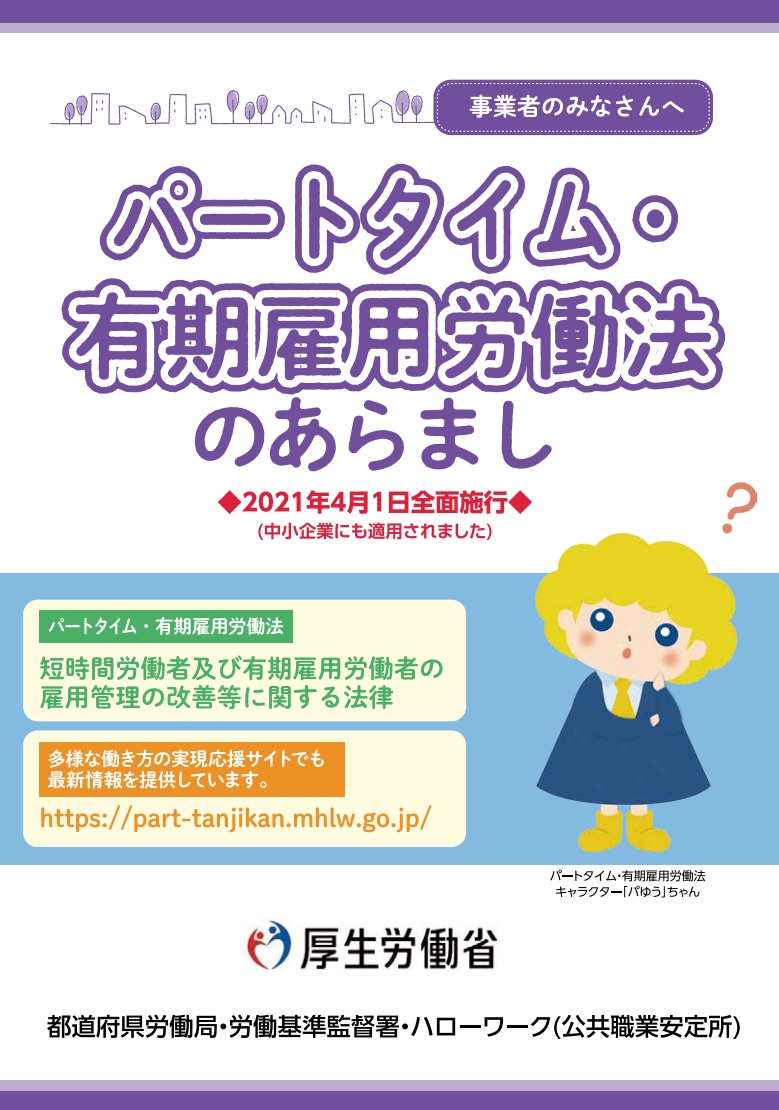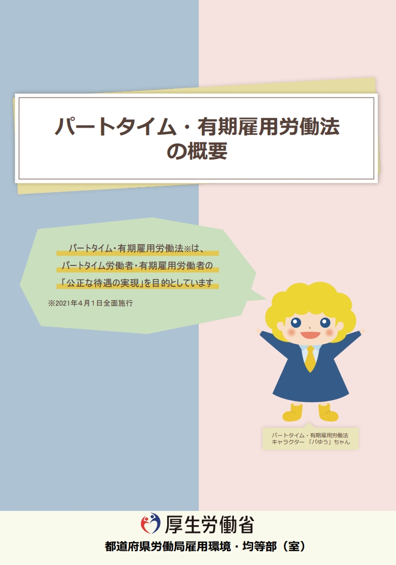 正社員とパートタイム労働者、有期雇用労働者との不合理な待遇差を禁止するなど、パート・アルバイト・契約社員として働く方の環境を良くするための法律です。