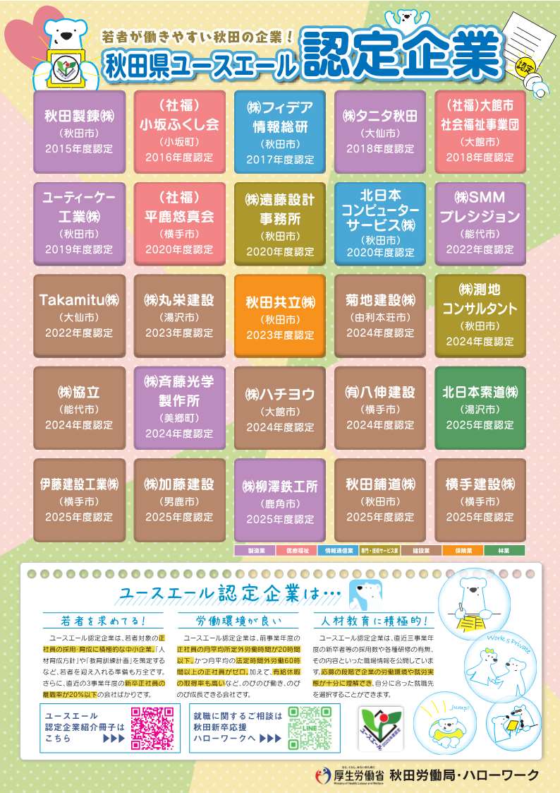 秋田県内のユースエール認定企業