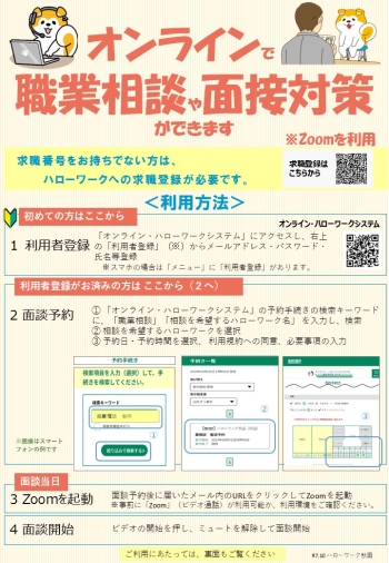 ハローワークまでの来所が困難な方、在職者の方など、是非お気軽にご活用ください。