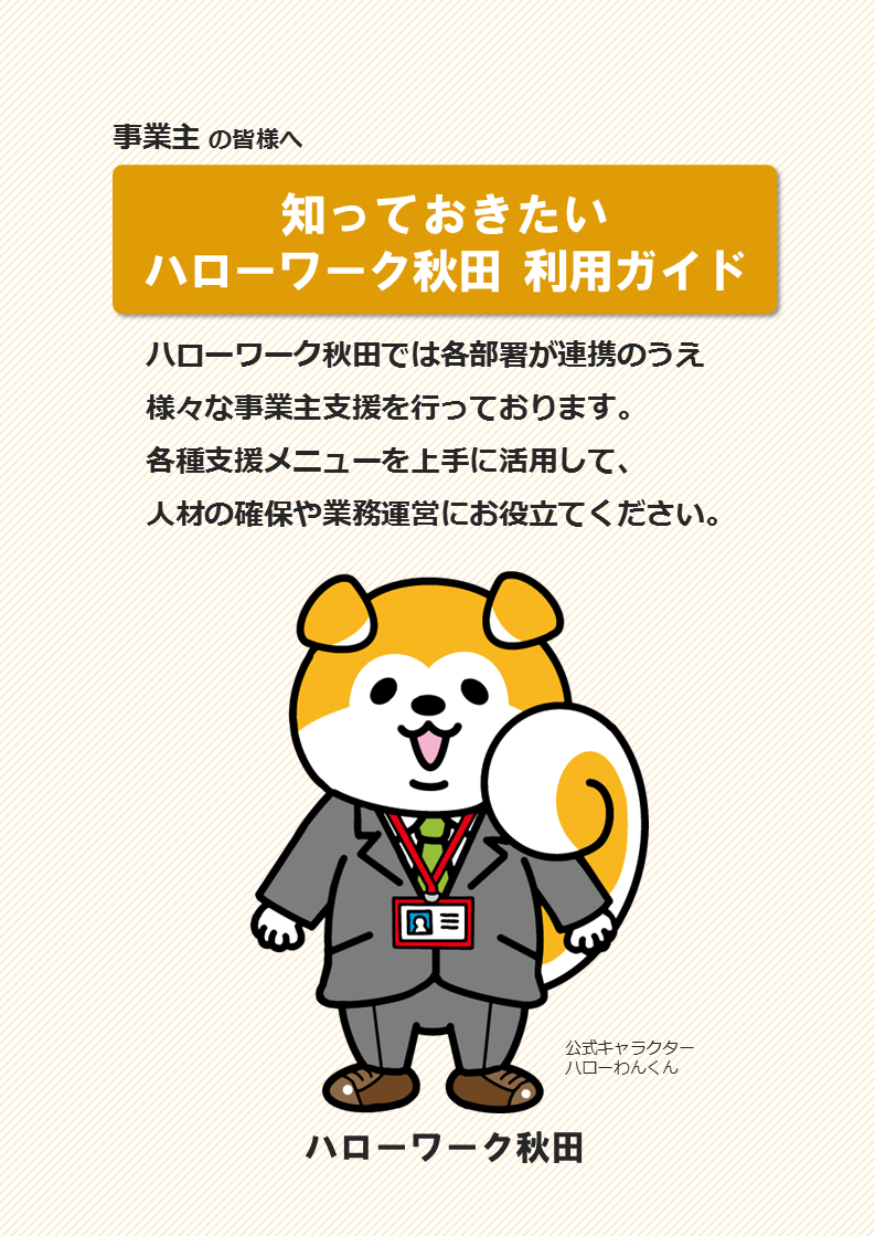 | ハローワーク秋田では各部署が連携のうえ様々な事業主支援を行っております。 各種支援メニューを上手に活用して、人材の確保や業務運営にお役立てください。 |