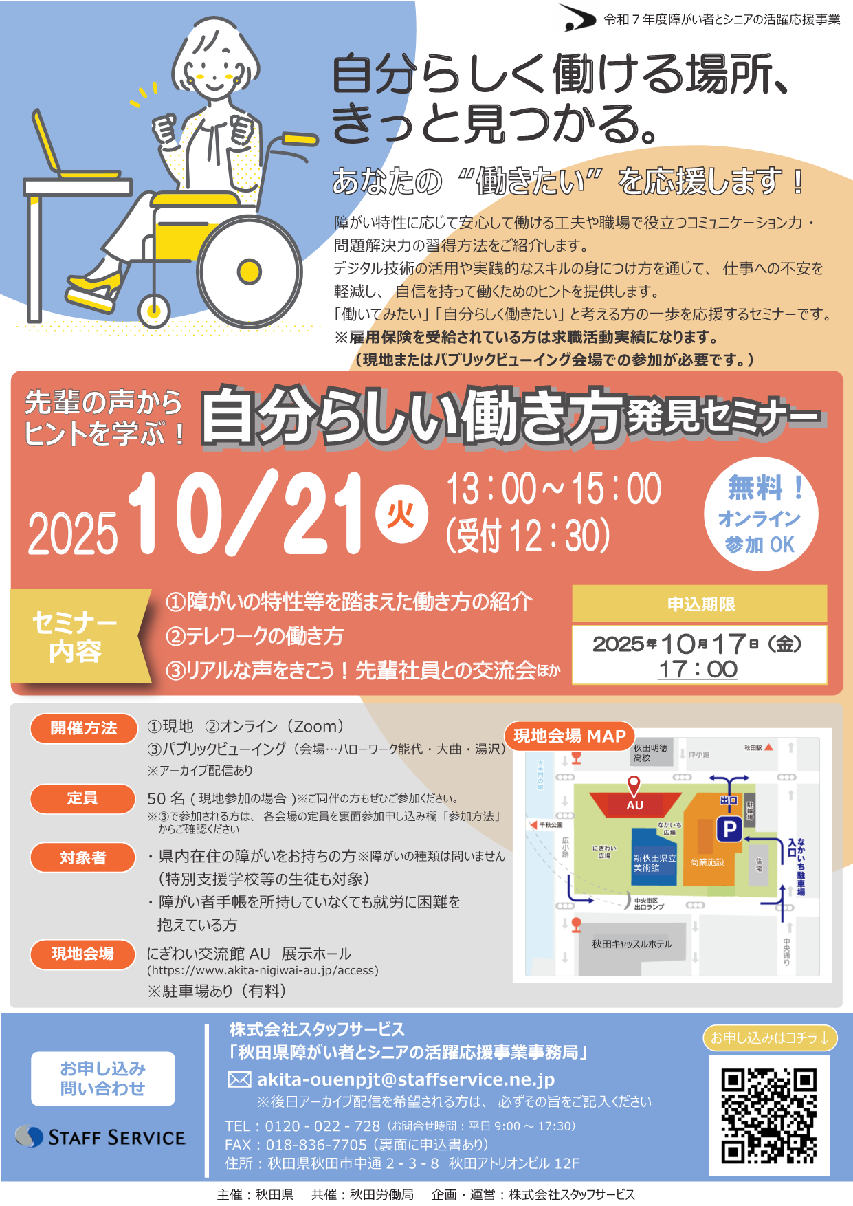 申し込みや詳細はこちらから!【障がい者のみなさま】「自分らしい働き方発見セミナー」を開催します! | 美の国あきたネット