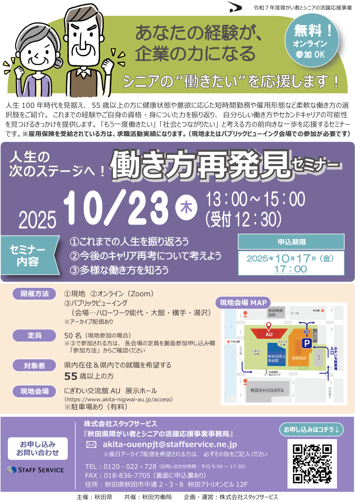 申し込みや詳細はこちらから!【シニアのみなさま】「人生の次のステージへ!働き方再発見セミナー」を開催します! | 美の国あきたネット