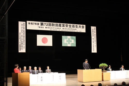 令和7年10月1日、あきた芸術劇場ミルハスの中ホールで開催された第72回秋田産業安全衛生大会において、令和7年度の安全衛生に係る秋田労働局長表彰を行いました。