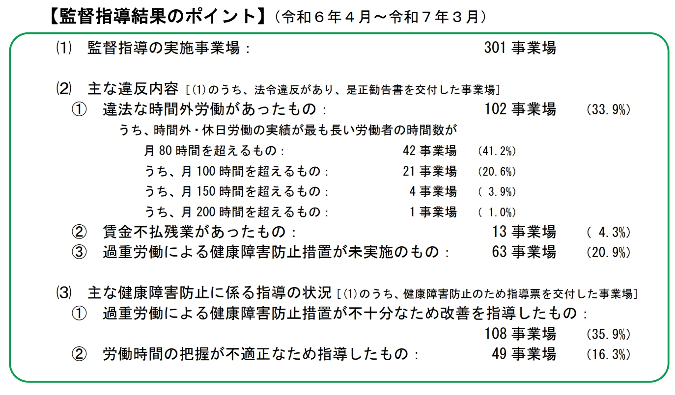長時間労働が疑われる事業場に対する令和6年度の監督指導結果を公表します