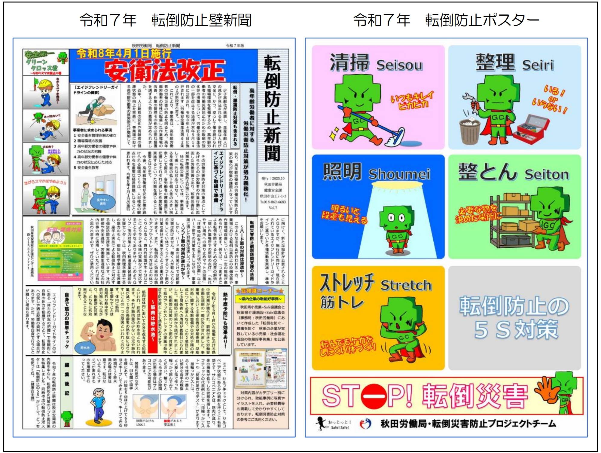 秋田労働局(局長 山本 博之)は、職場における転倒災害を減少させるため、令和7年の転倒防止壁新聞と転倒防止ポスターを作成し、県内の事業場や関係者団体等及び市町村に対して周知等行うこととしました。