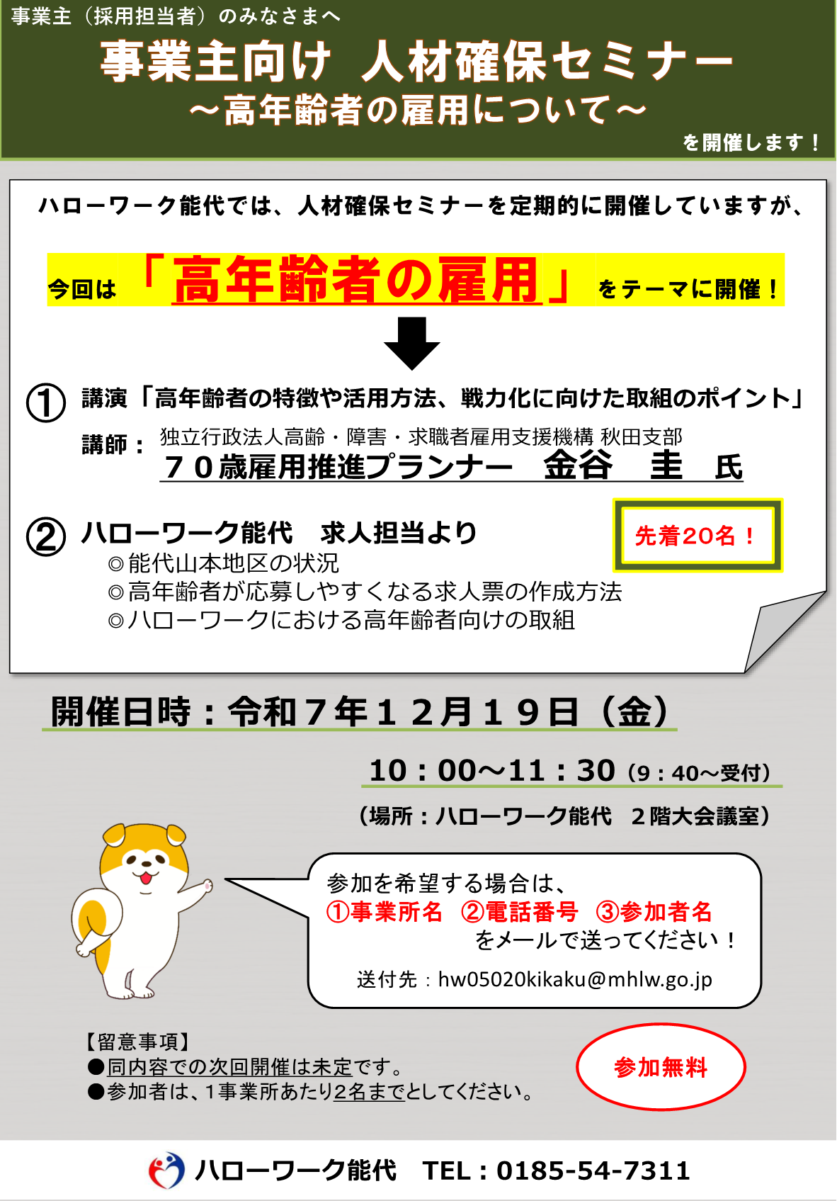 ハローワーク能代では、定期的に人材確保セミナーを開催しております。