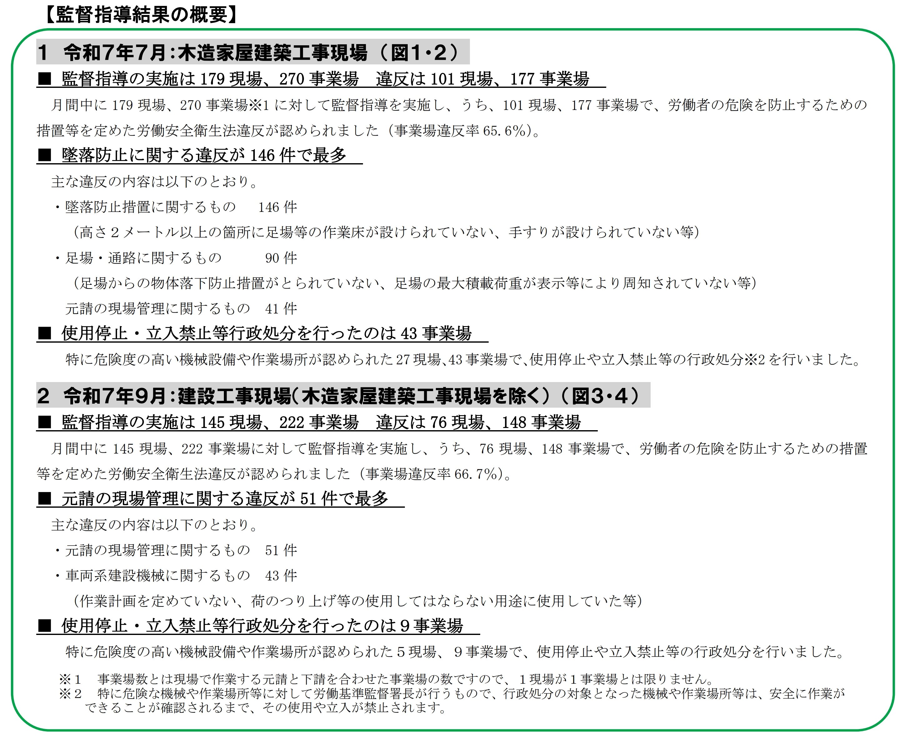 - 「建設業における災害防止集中取組月間」の監督指導結果を公表します