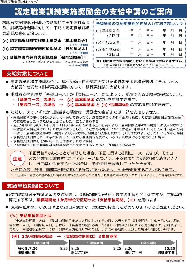 求職者支援訓練の訓練実施機関に対する奨励金について)