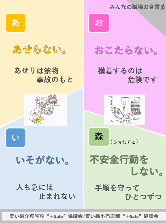「青い森“+Safe”協議会」は、近年増加している転倒や腰痛等の労働者の作業行動を起因とする労働災害(行動災害)による死傷者数を減少させるため、構成員の安全衛生に対する意識啓発と自主的な安全衛生活動の定着を図るとともに、構成員が青森労働局管内の安全衛生に対する機運醸成を推進することを目的として設置されたものです。