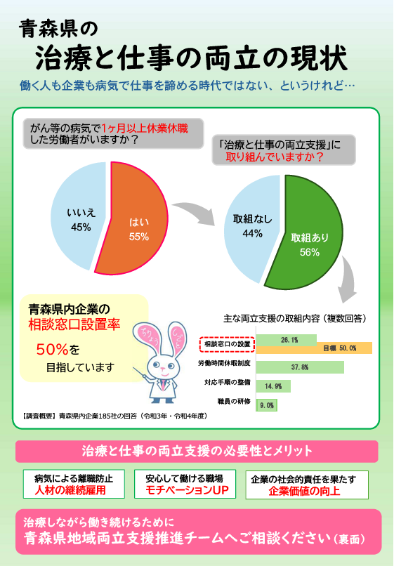 治療と仕事に関する支援を行っています(青森産業保健総合支援センターホームページ)