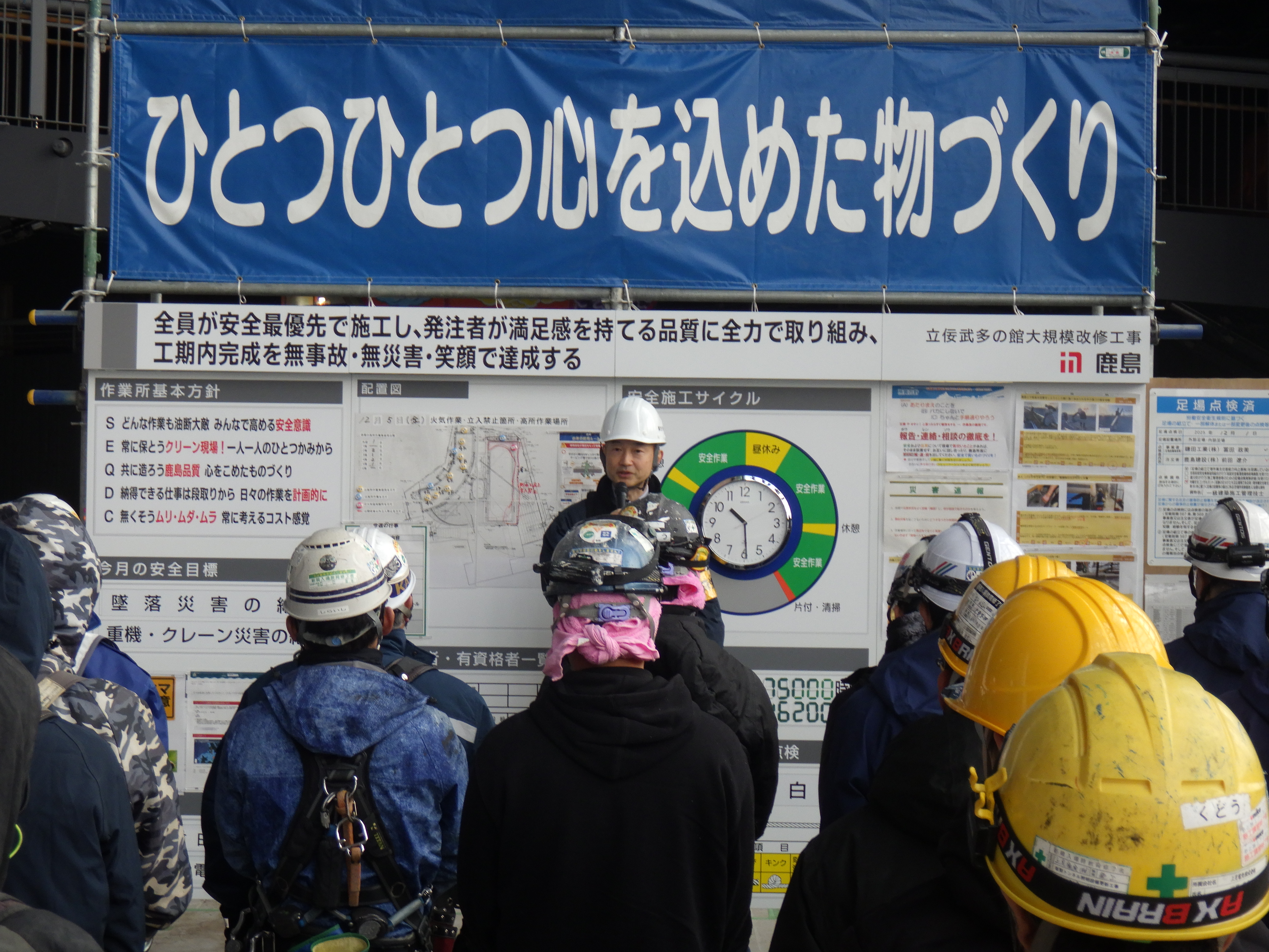 角井局長が現場パトロールを実施し、冬期及び年末年始における労働災害防止対策の徹底を呼び掛けました。