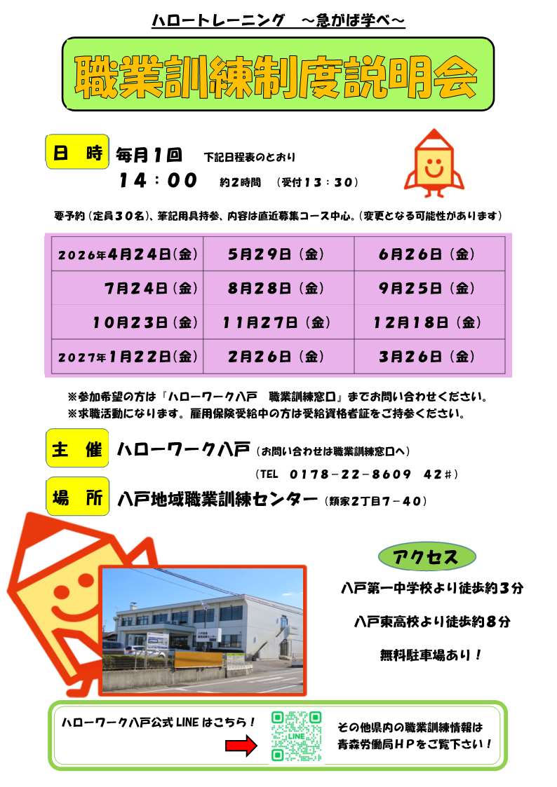 - 職業訓練制度説明会(ハローワーク八戸)【3月27日開催】
