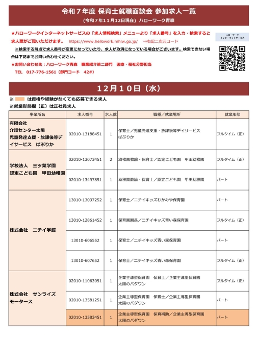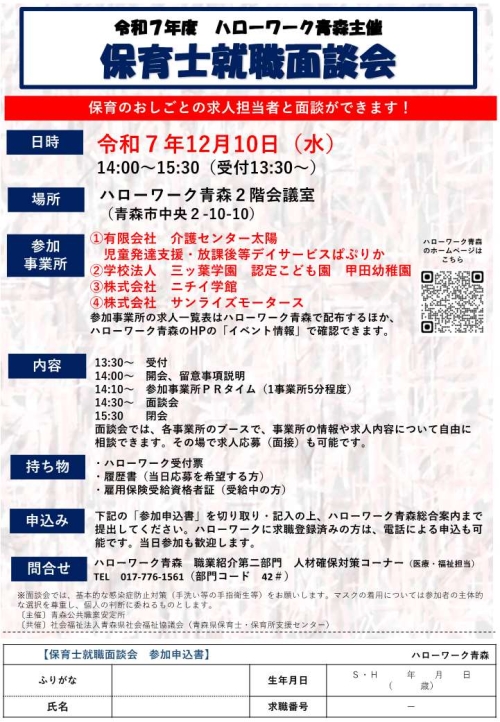- 令和7年度 保育士就職面談会(ハローワーク青森)