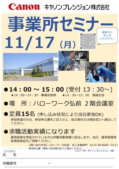 企業の担当者から、事業内容、求人内容、職場環境、福利厚生などの説明をしていただきます。