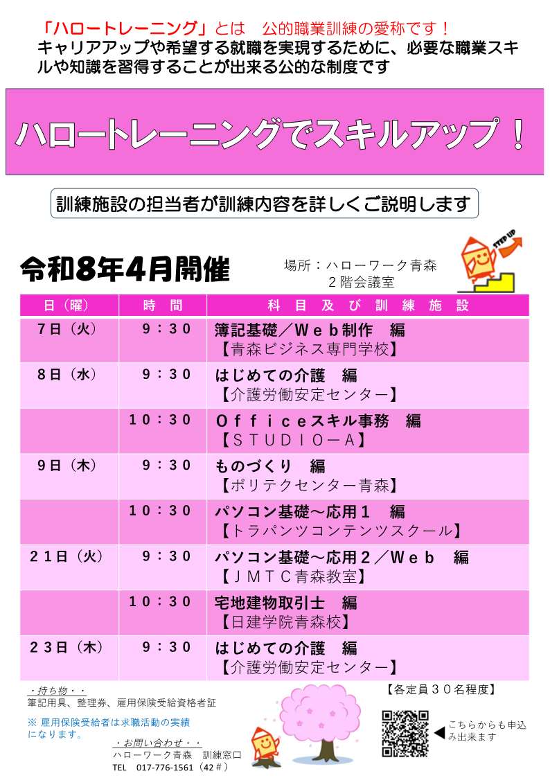 「ハロートレーニングでスキルアップ!」の開催について