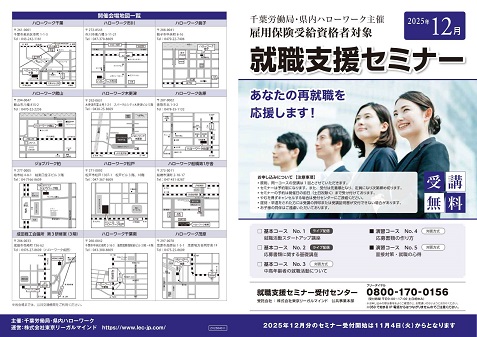 求職活動中の皆様へ【雇用保険受給資格者対象 就職支援セミナーのお知らせ】