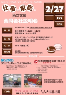【マザーズハローワークちば】令和8年2月27日(金)「仕事と家庭の両立支援 合同会社説明会」開催のお知らせ