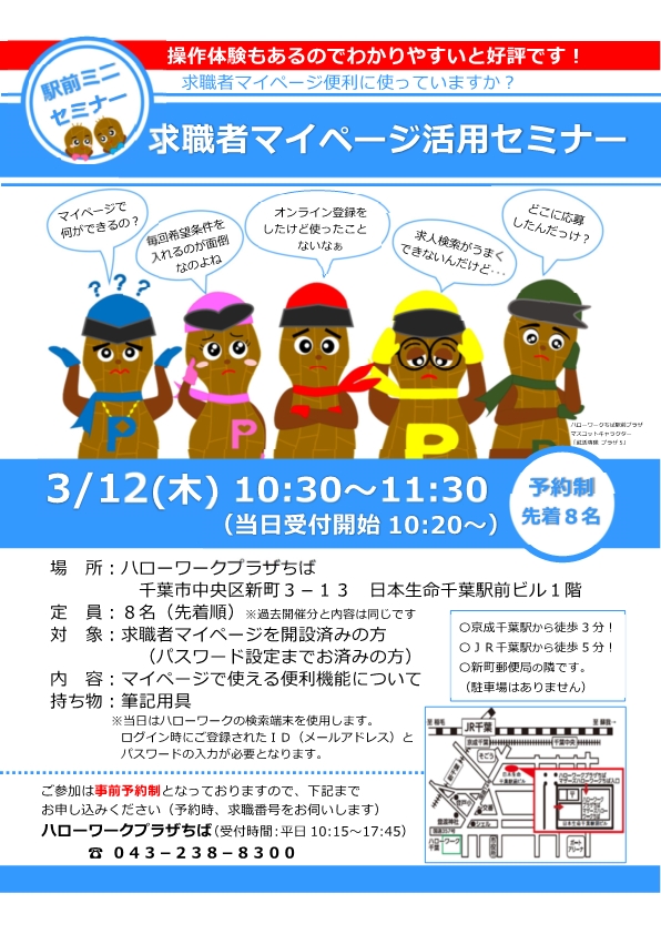 3月12日(木)~求職者マイページ便利に使っていますか?~「求職者マイページ活用セミナー」開催のお知らせ