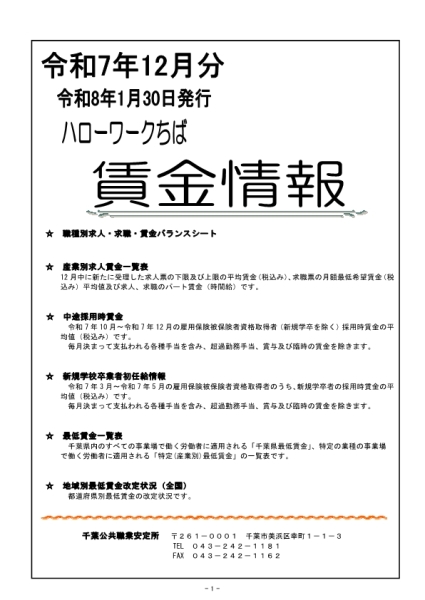 ハローワーク千葉 「賃金情報」令和7年12月分