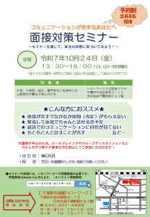 - 10月24日(金)「面接対策セミナー」開催のお知らせ