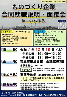 12月18日(木) ものづくり企業合同就職説明・面接会inいちはら