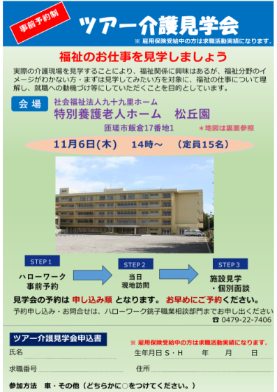 11月6日(木)開催「介護ツアー見学会 in 特別養護老人ホーム松丘園」のお知らせ