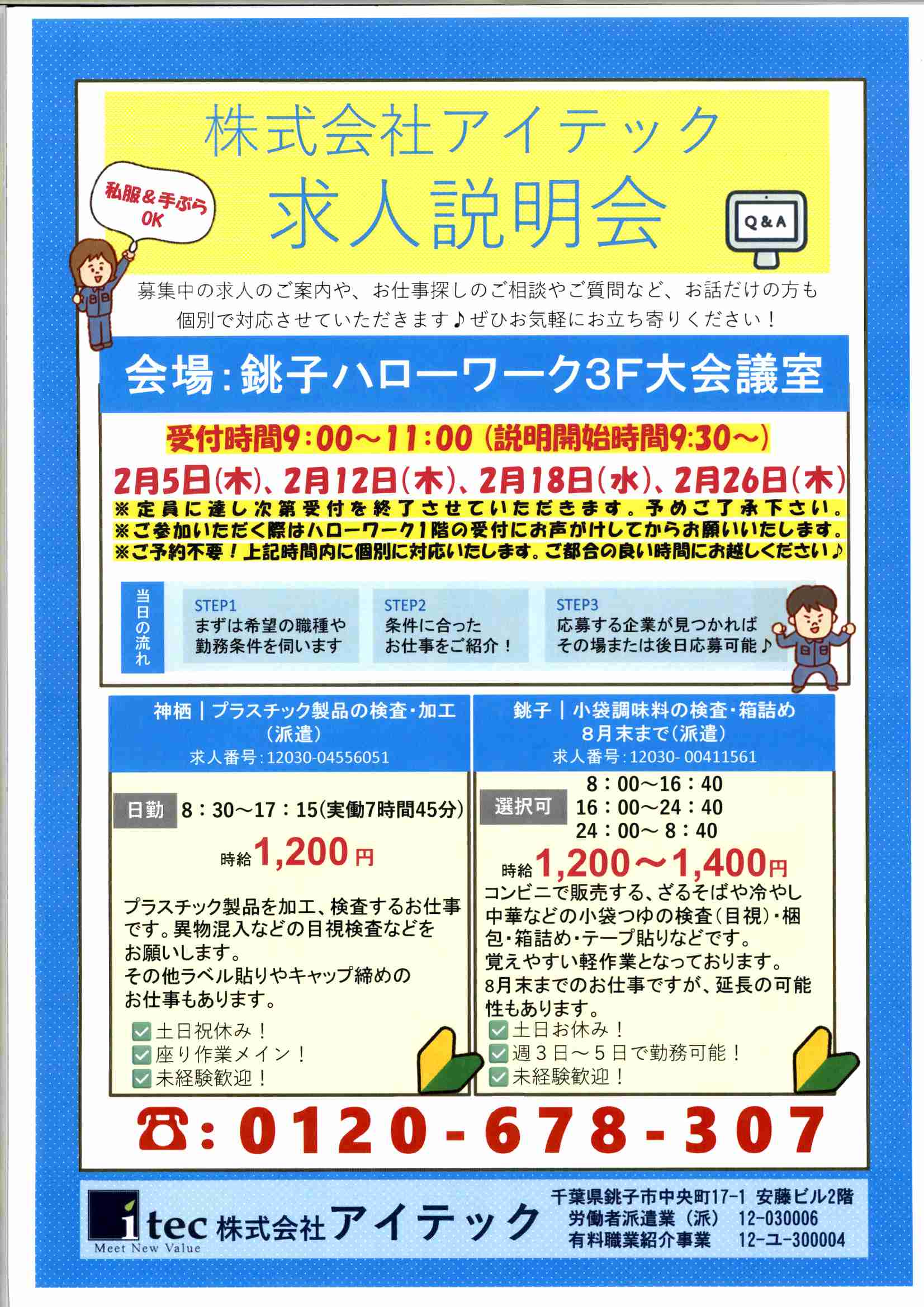 ※ハローワーク銚子での開催ではなく、鹿嶋方面の会場となります。 ※予約要