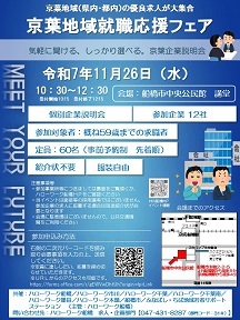 【ハローワーク船橋】11月26日(水)6所共催「京葉地域就職応援フェア」のお知らせ