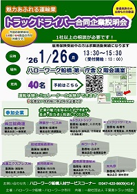 【ハローワーク船橋】1月26日(月)「トラックドライバー合同企業説明会」のお知らせ
