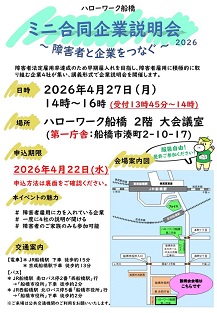 【ハローワーク船橋】4月27日(月)「ミニ合同企業説明会~障害者と企業をつなぐ~」の開催について