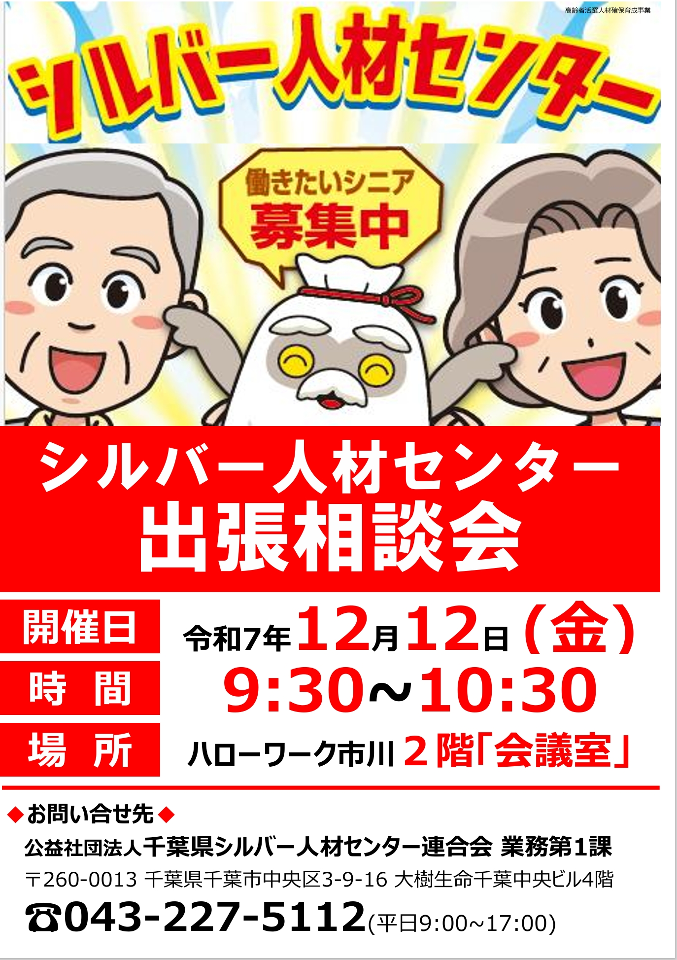 シルバー人材センターによる相談会をハローワーク市川で開催します。