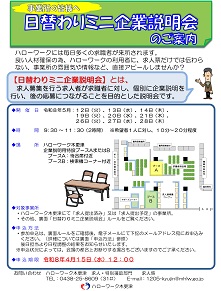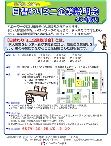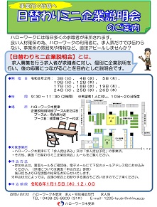 ハローワーク木更津では、毎週火・水・木曜日の「失業認定日」に合わせて、求職者の方向けに「日替わりミニ企業説明会」を開催します!