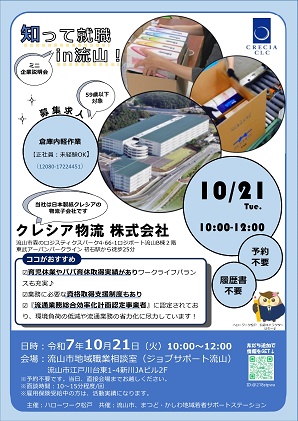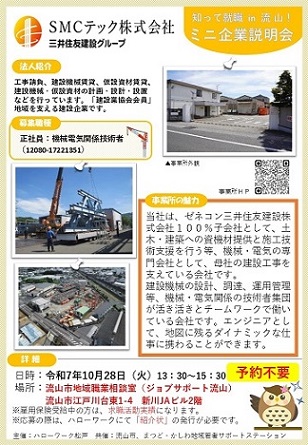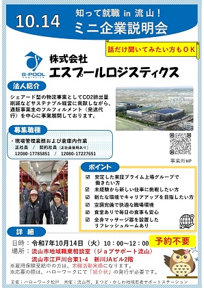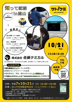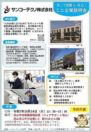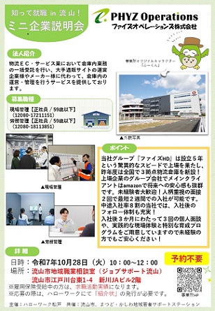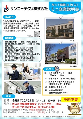 10月開催「知って就職in流山!~ミニ企業説明会~」のお知らせ