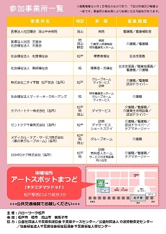 当日は10事業所がブースに出展し、直接事業所のお話を聞くことが出来るほか、福祉の資格や仕事に関する総合的な相談もできます。ぜひご参加ください。
