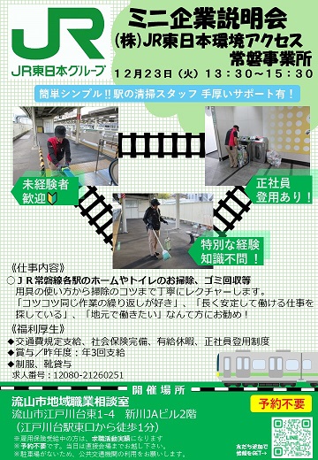 株式会社JR東日本環境アクセス常磐事業所 企業説明会のお知らせ