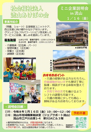 社会福祉法人流山あけぼの会 企業説明会のお知らせ