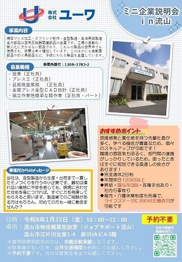 株式会社ユーワ 企業説明会のお知らせ