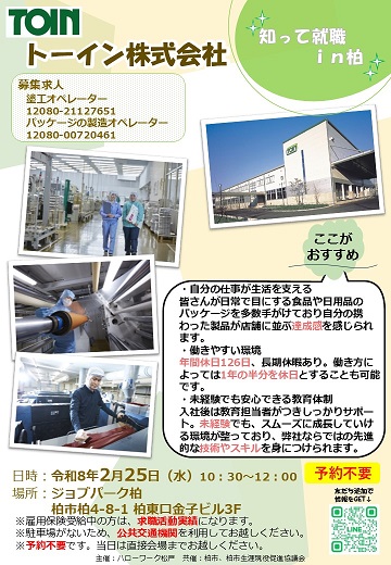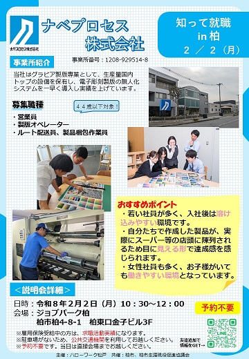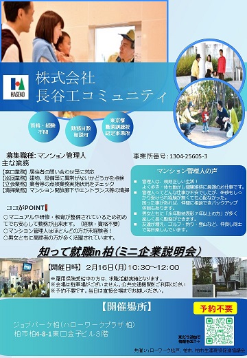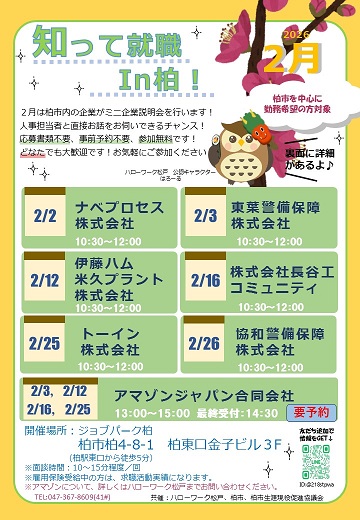 2月開催「知って就職in柏!~ミニ企業説明会~」のお知らせ